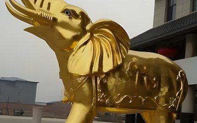 貼金大象銅雕塑